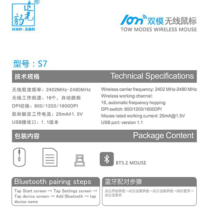 موس بی‌سیم S7 ترکیبی از راحتی و کارایی است؛ که از طریق دانگل USB 2.4 گیگاهرتزی کار می‌کند و تا ۱۰ متر اتصال پایدار و بدون قطعی دارد. طراحی ارگونومیک برای استفاده طولانی‌مدت، وزن سبک حدود 60 گرم و اندازه جمع‌وجور آن را برای خانه، دفتر یا سفر ایده‌آل کرده است. حسگر اپتیکال دقیق با سه سطح DPI تا ۱۶۰۰، چهار کلید کاربردی و سازگاری کامل با انواع لپ‌تاپ و کامپیوتر، تبلت و موبایل های هوشمند تجربه‌ای روان و سریع را تضمین می‌کند. با نصب فوری بدون نیاز به درایور و مصرف کم باتری، این موس انتخابی هوشمندانه و اقتصادی برای هر کاربر است.