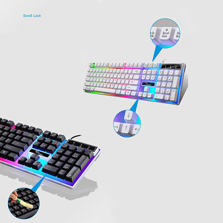 ست موس و کیبورد مخصوص بازی مدل G2، یک مجموعه کامل برای گیمرهایی است که به دنبال عملکرد مناسب، طراحی جذاب و دوام بالا هستند. این محصول با فرم‌فکتور Full Size طراحی شده و دارای ۱۰۴ کلید اصلی به‌همراه ۱۲ کلید میانبر است که کنترل عملکردهای مالتی‌مدیا و تنظیمات سیستم را سریع‌تر و ساده‌تر می‌کند. کلیدهای کیبورد از جنس ABS ساخته شده‌اند که علاوه بر کیفیت ساخت مطلوب، در برابر فرسایش ناشی از استفاده‌ی مداوم مقاوم‌اند. نوع سوئیچ‌های کیبورد از نوع ممبران بوده و به همین دلیل عملکردی نرم و بی‌صدا دارند. نورپردازی RGB با افکت‌های متنوع، جلوه‌ای جذاب به میز کار یا فضای گیمینگ می‌بخشد و قابلیت روشن/خاموش شدن آن از طریق کلید Scroll Lock فراهم شده است. اتصال این کیبورد و ماوس به‌صورت باسیم و از طریق رابط USB انجام می‌گیرد که پایداری بالا و تأخیر بسیار کمی را برای کاربران فراهم می‌کند. طول کابل یک‌صد و بیست و پنج سانتی‌متری، آزادی عمل مناسبی برای کاربر ایجاد می‌کند. ماوس این مجموعه نیز دارای دقتی برابر با ۱۶۰۰ DPI و سه کلید کاربردی است که با حسگر اپتیکال، برای بازی‌های عمومی و کاربری روزمره به‌خوبی عمل می‌کند. وزن مناسب، طراحی ارگونومیک و سازگاری با تمامی سیستم‌عامل‌ها، این محصول را به گزینه‌ای قابل‌اعتماد برای کاربران حرفه‌ای و علاقه‌مندان بازی‌های کامپیوتری تبدیل کرده است.